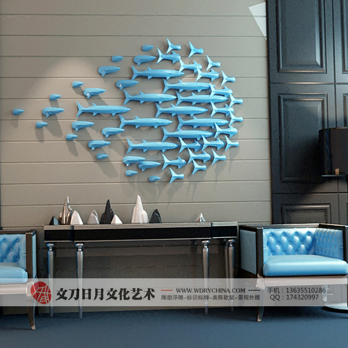简约现代马鲛鱼群装饰品创意壁挂摆件软装立体背景墙挂件壁饰